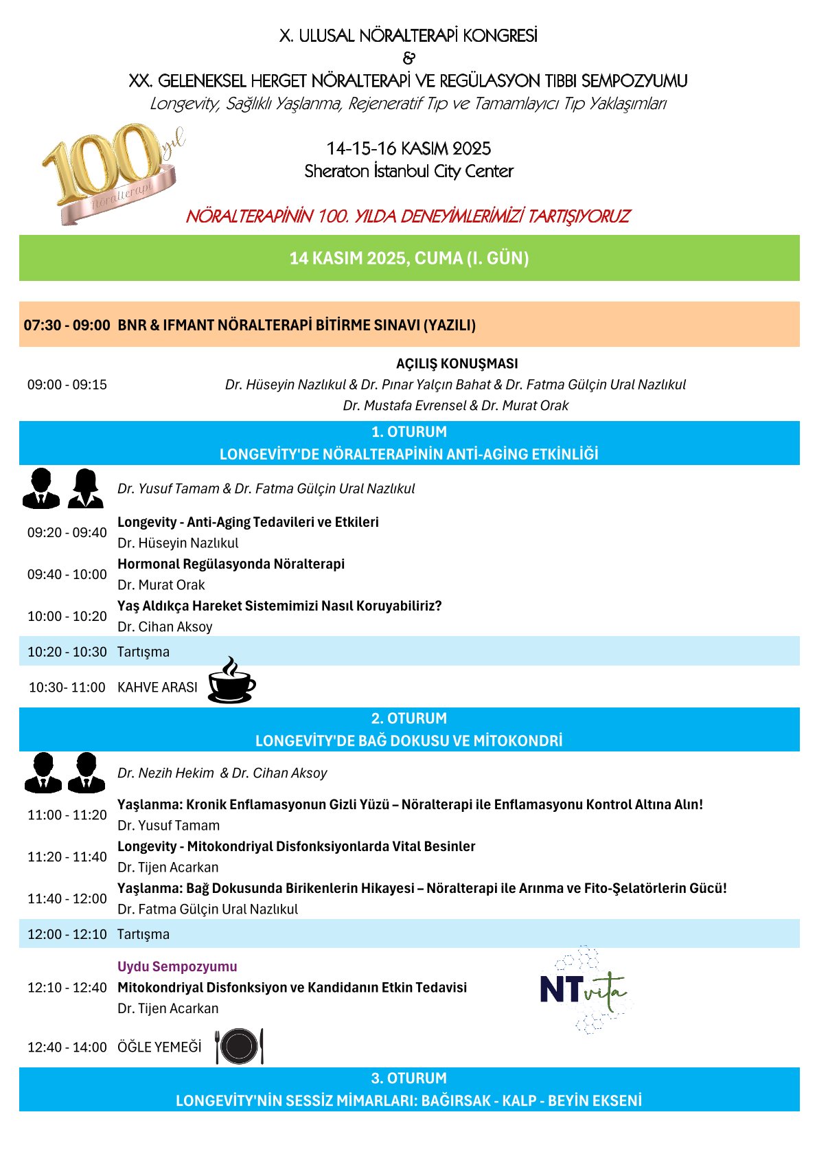 Nöralterapi ve Regülasyon Tıbbı alanında yıllardır süregelen tecrübelerimizi ulusal ve uluslararası düzeyde lider bilim insanlarıyla paylaşacağız. Bu çerçevede, nöralterapinin 100. yılı olması, kongremize ayrı bir anlam ve sorumluluk yüklemektedir. Bu özel yılda, nöralterapinin yalnızca klinik bir yöntem değil, aynı zamanda bir yaşam felsefesi olarak nasıl evrildiğini birlikte tartışacağız.